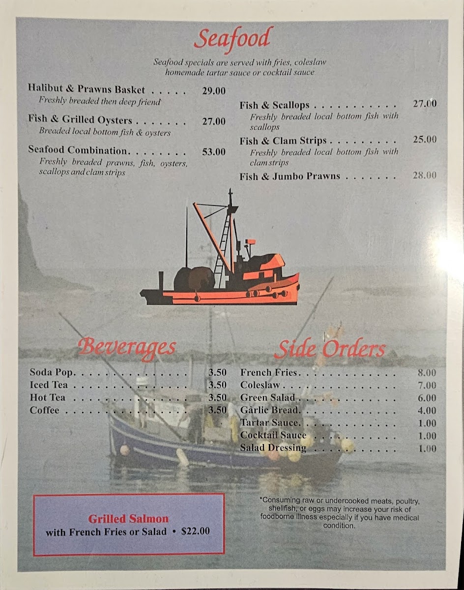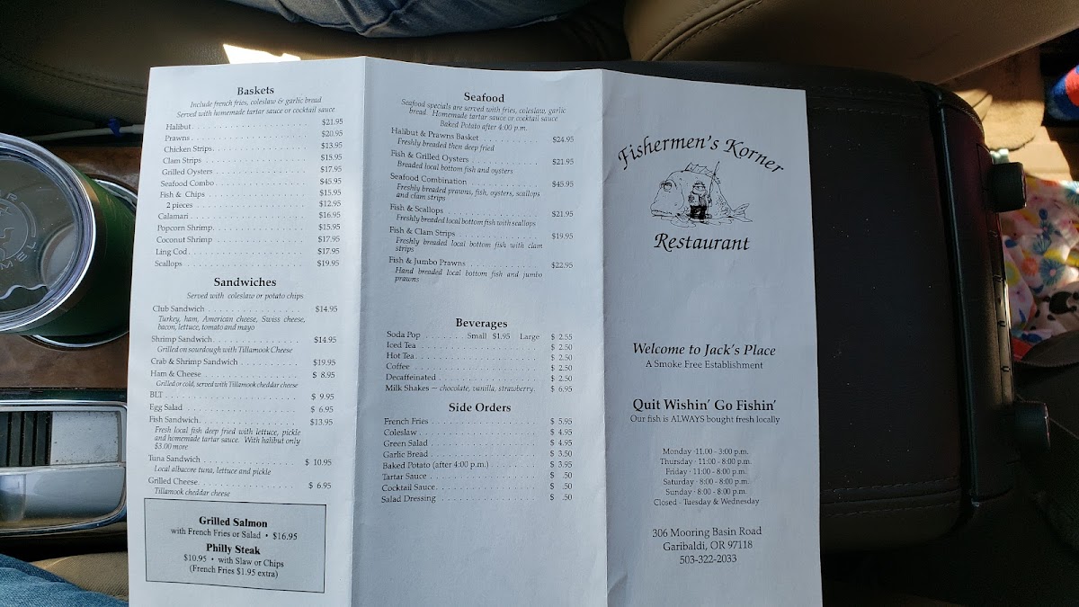Welcome to Fisherman's Korner Restaurant, a hidden gem nestled in Garibaldi, Oregon. This cozy eatery, located at 306 Mooring Basin Rd, offers a rich menu that celebrates the bounty of the sea. Start your culinary journey with a bowl of homemade clam chowder or the creamy oyster stew, both served with fresh bread to soak up every flavorful drop.